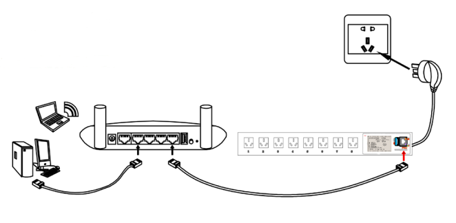 3. LAN 口用網(wǎng)線連接至 PC 或路由器, RJ45 插座指示燈亮起即可。