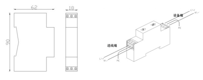 安裝說(shuō)明: 在被保護(hù)設(shè)備的線路接口前段串聯(lián)接入避雷器,“OUT”為設(shè)備端、“IN”為進(jìn)線端,將避雷器接地端與防雷地線(推薦接地電阻≤4Ω)作良好的電氣連接。