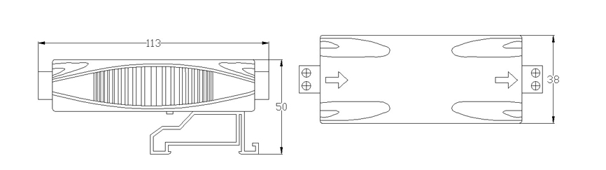 Put an arrester in series at the leading end of the interface of lines of the protected equipment.”O(jiān)UT” is equipment end and “IN” is incoming line end.Connect the arrester ground terminal and lightning protection ground lead well (suggested earth resistance≤4Ω).